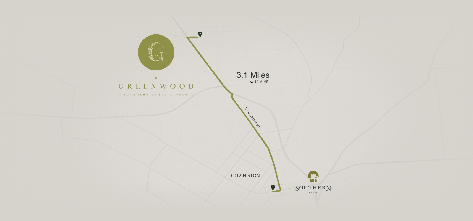 Just three miles from The Greenwood, The Southern Hotel offers convenient room blocks for meeting and event guests. Colleagues can unwind in beautifully restored accommodations, enjoy refined amenities, and gather in shared spaces that turn professional events into comfortable, connected experiences.