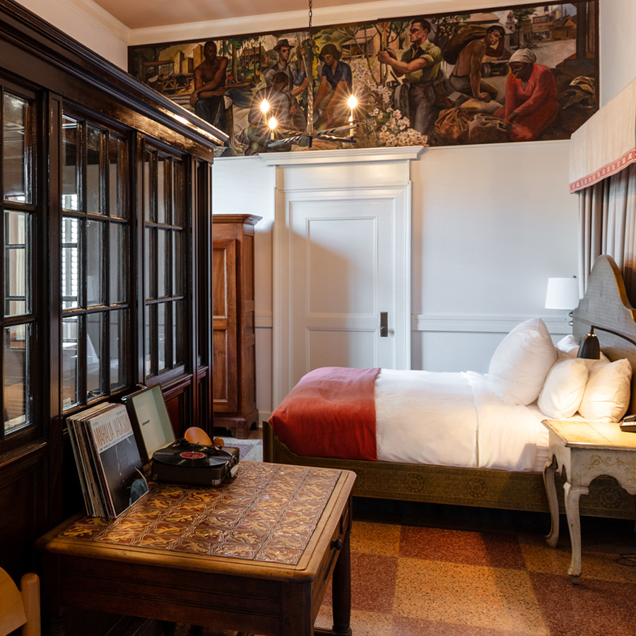 Unwind in double-double or king rooms featuring plush bedding, modern conveniences, and timeless Southern charm. Each one offers refined comfort, quiet ambiance, and thoughtful details designed to refresh and restore after a productive day.